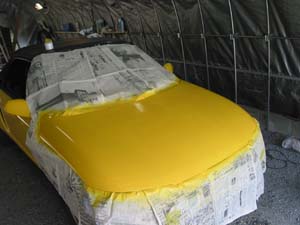ボンネットを缶スプレー塗装する